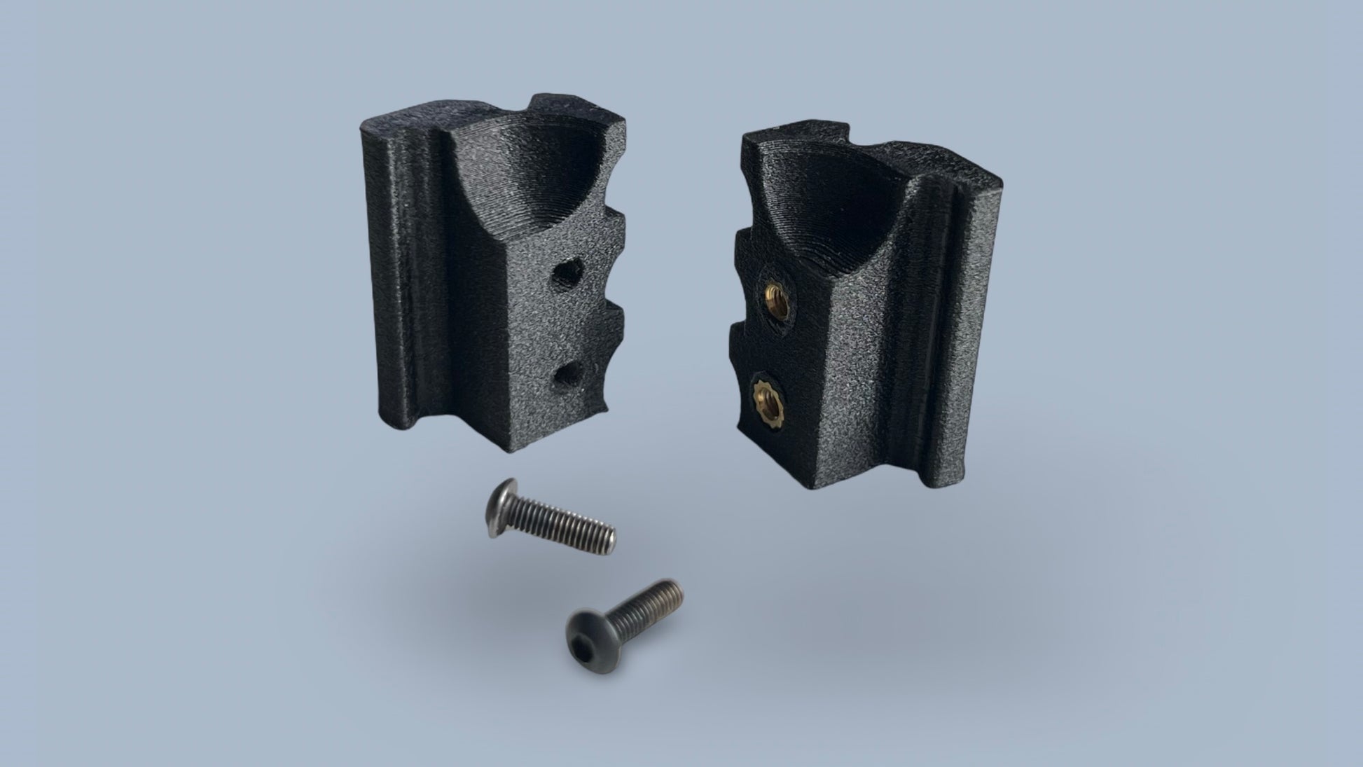 The bottom rail extender is 3D-printed in high strength plastic polymer and exits of two separate pieces screwed together. Bolts are included in purchase.